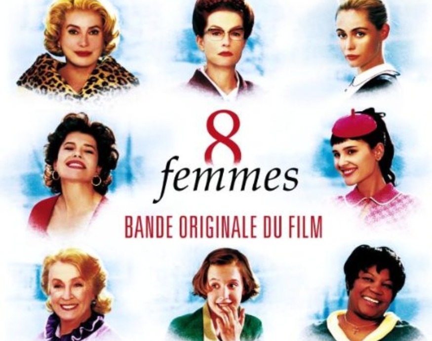 8 femmes (2001) est un film réalisé par François Ozon avec Catherine Deneuve, Isabelle Huppert, Ludivine Sagnier. La musique originale est signé Krisna Levy, les acrtices reprenant de leur côté un titre chanté avec par exemple Ludivine Sagnier : papa t'es plus dans le coup, Fanny Ardant : à quoi sert de vivre libre ou Daniele Darrieux : il n'y a pas d'amour heureux.